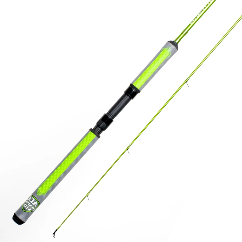 These rods boast extreme sensitivity, robust backbone, and a split grip handle for maximum comfort during use. Lightweight at 3.3 oz. for the 6′ and 3.5 oz. for the 6’6”, these spinning rods are ideal for casting and dock shooting. Crafted with a softer tip, they offer superior feel and performance compared to our previous models. Recommended reel sizes include the Lew’s Laser Light, Mach1, Wally Marshall Speed Shooter and Shimano Sienna 500 and 1000 series.
