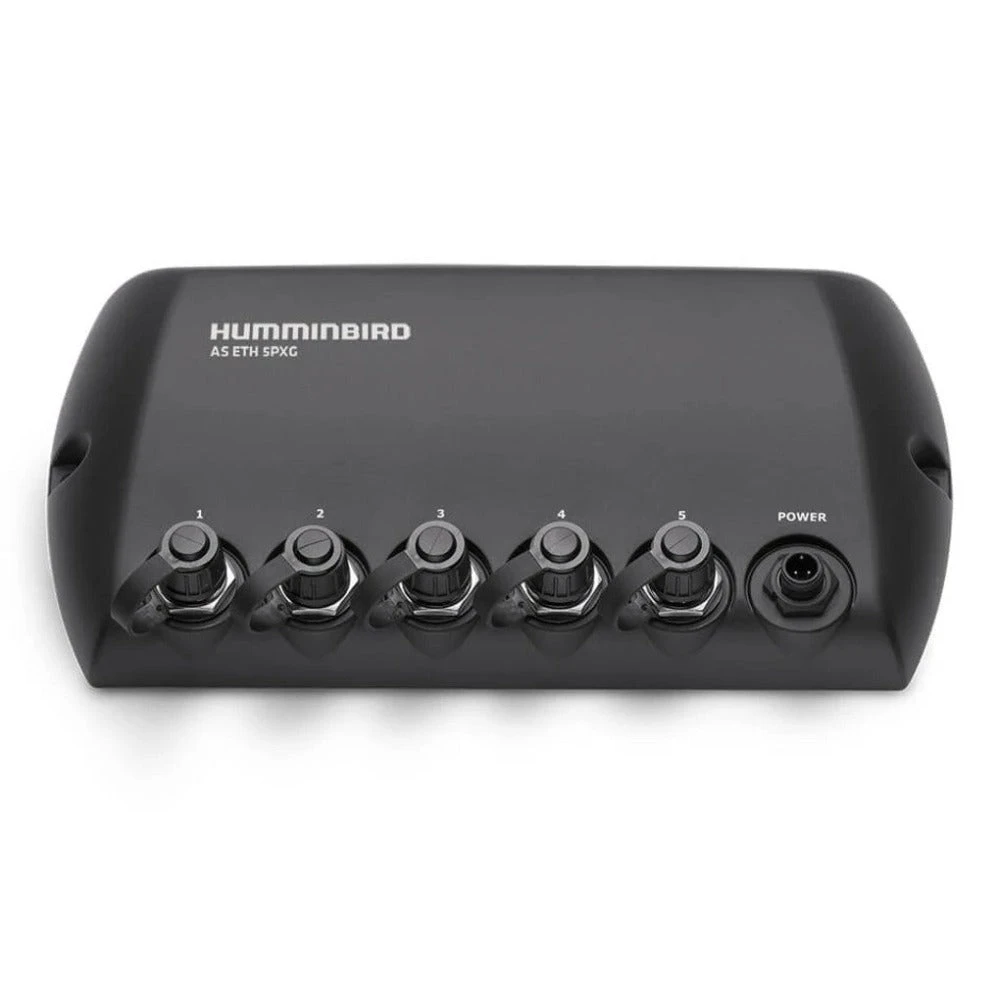 The Humminbird AS-ETH-5PXG is a waterproof switch that allows you to quickly and easily connect up to five Ethernet items. This switch can be used to link multiple Humminbird head units or share transducers. The switch consists of five ethernet ports and is also NMEA 2000 compliant.