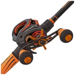 The 8-ball bearing Laser MG Speed Spool baitcast reel features a one-piece, lightweight graphite frame, and sideplates. The palming side-plate is quick and easy to remove for immediate access to the spool. The reel’s brass main gear and crankshaft are high strength solid brass. A durable Rulon drag system delivers up to 15 lbs. of drag power, with adjustments made easily using the bowed graphite star located next to the handle. The rod features Lew’s proprietary skeletal graphite reel seat to keep the reel secure and in place without jeopardizing sensitivity. The rod’s EVA split grip handle reduces weight and makes for all-day fishing comfort. A patented “No Foul” hook keeper stays out of the way during casts and retrieves, but on the ready to safely secure a hook or lure when not in use.