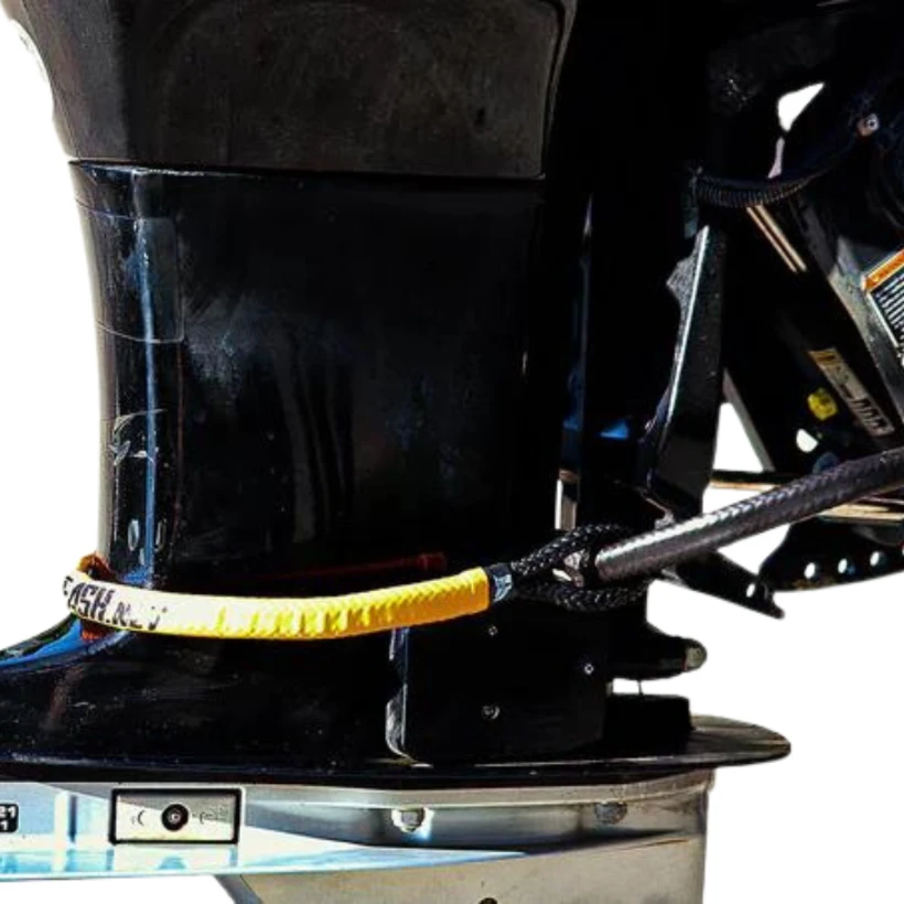 The Leash is a patented marine product designed and engineered to reduce the risk of an outboard motor flipping into the cockpit in the event of an underwater strike with a submerged object.