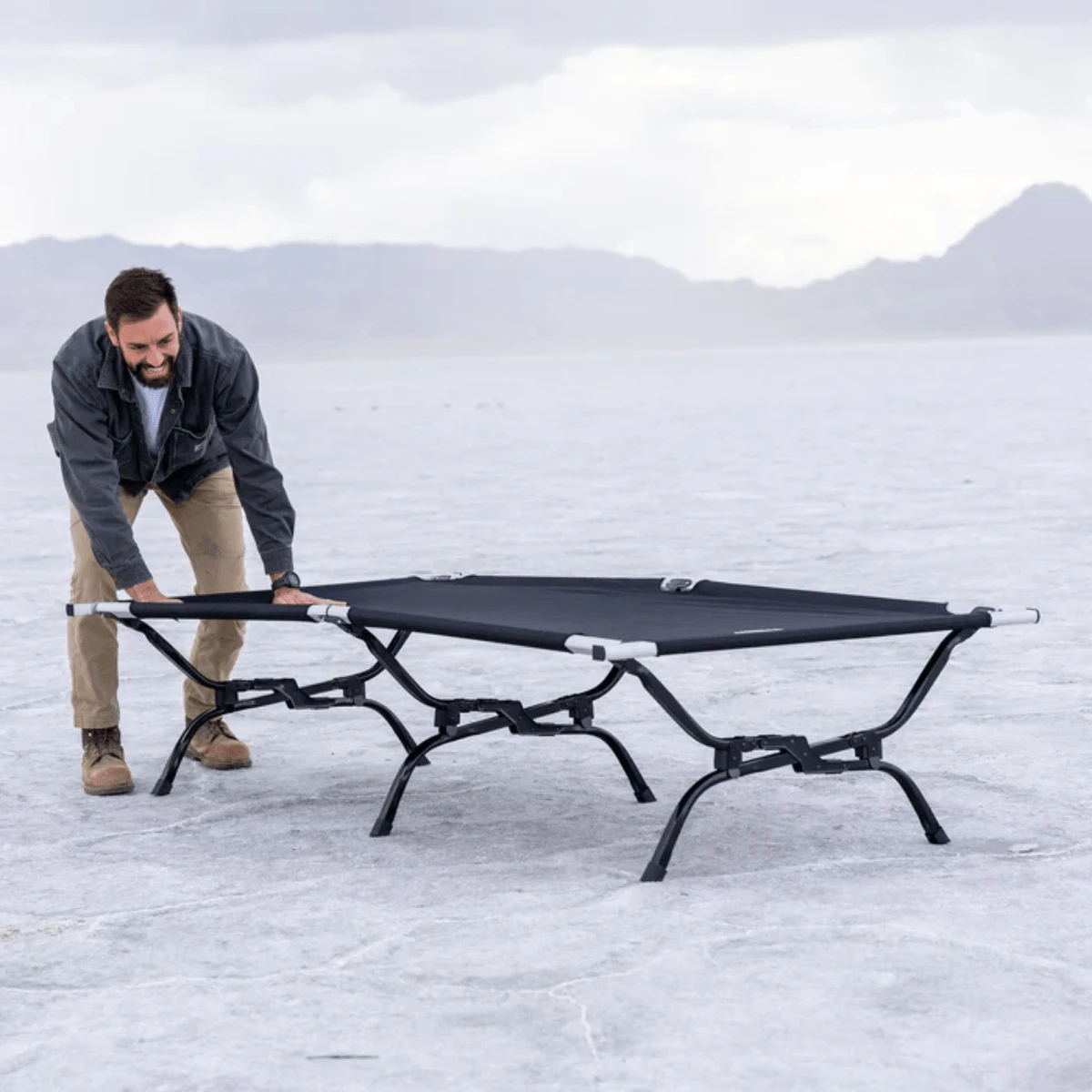 With the Universal Camp Cot Teton set out to make a super-strong cot that would feel as good as your bed at home and be easy to set up. So the strength is in the steel X-leg design. It has a 400 lb (181 kg) weight capacity. But there’s more: