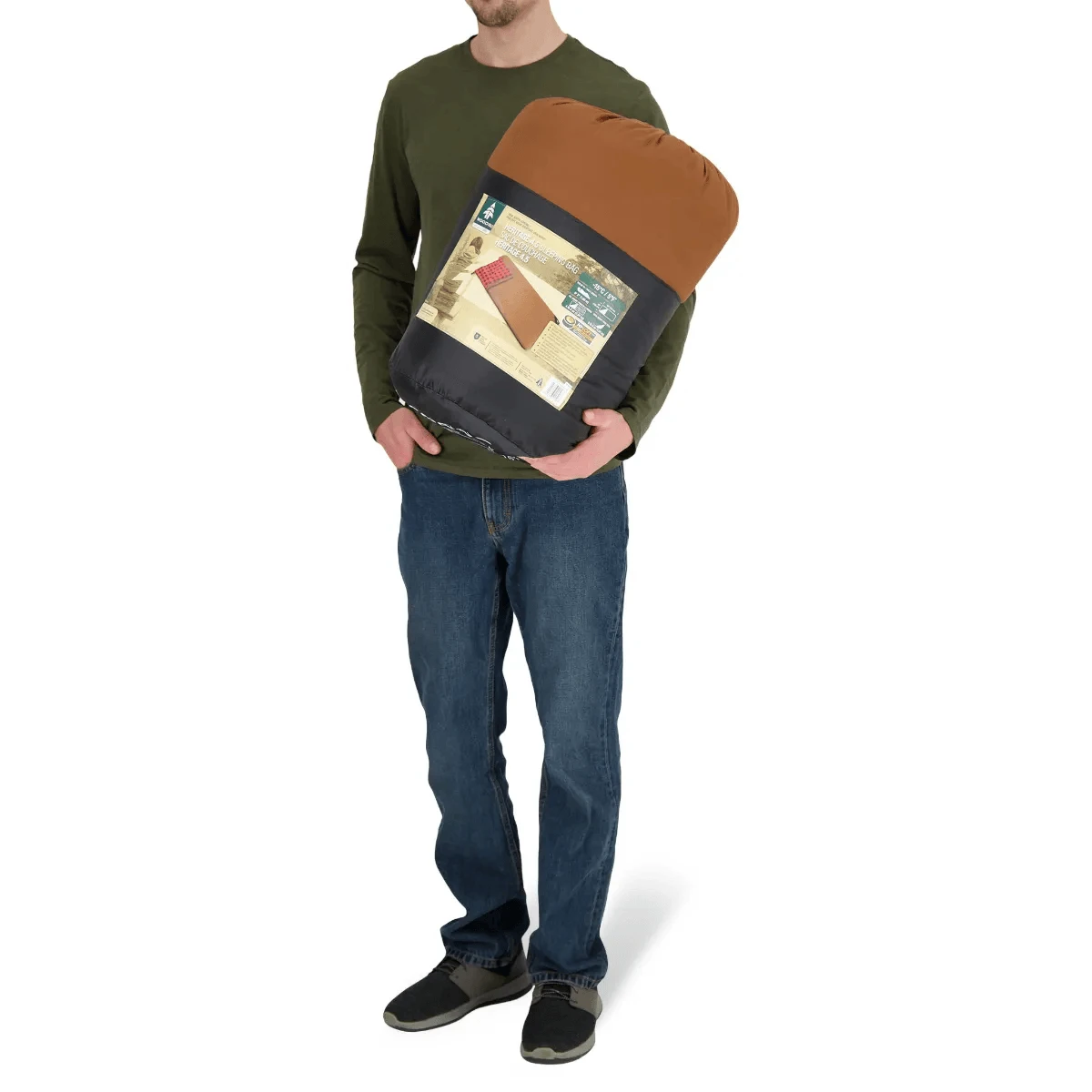 When you need a great sleeping bag to come back to after a long day on the trail, choose the Woods Heritage Cotton Flannel Camping Sleeping Bag: 5 Degree Cold Weather in the color Blue. This four-season sleeping bag was built to last a lifetime. It’s filled with 4.5 lb of Hi-Loft synthetic polyester fill and has a thermo-layer with a draft tube for superior heat retention. Its durable shell will stand up to years of rigorous adventure and its two-way zipper means you can join two Heritage sleeping bags together. It’s a warm, comfortable sleeping bag that’s soft to the touch. Woods invented the original down ‘sleeping robe’ in 1906.