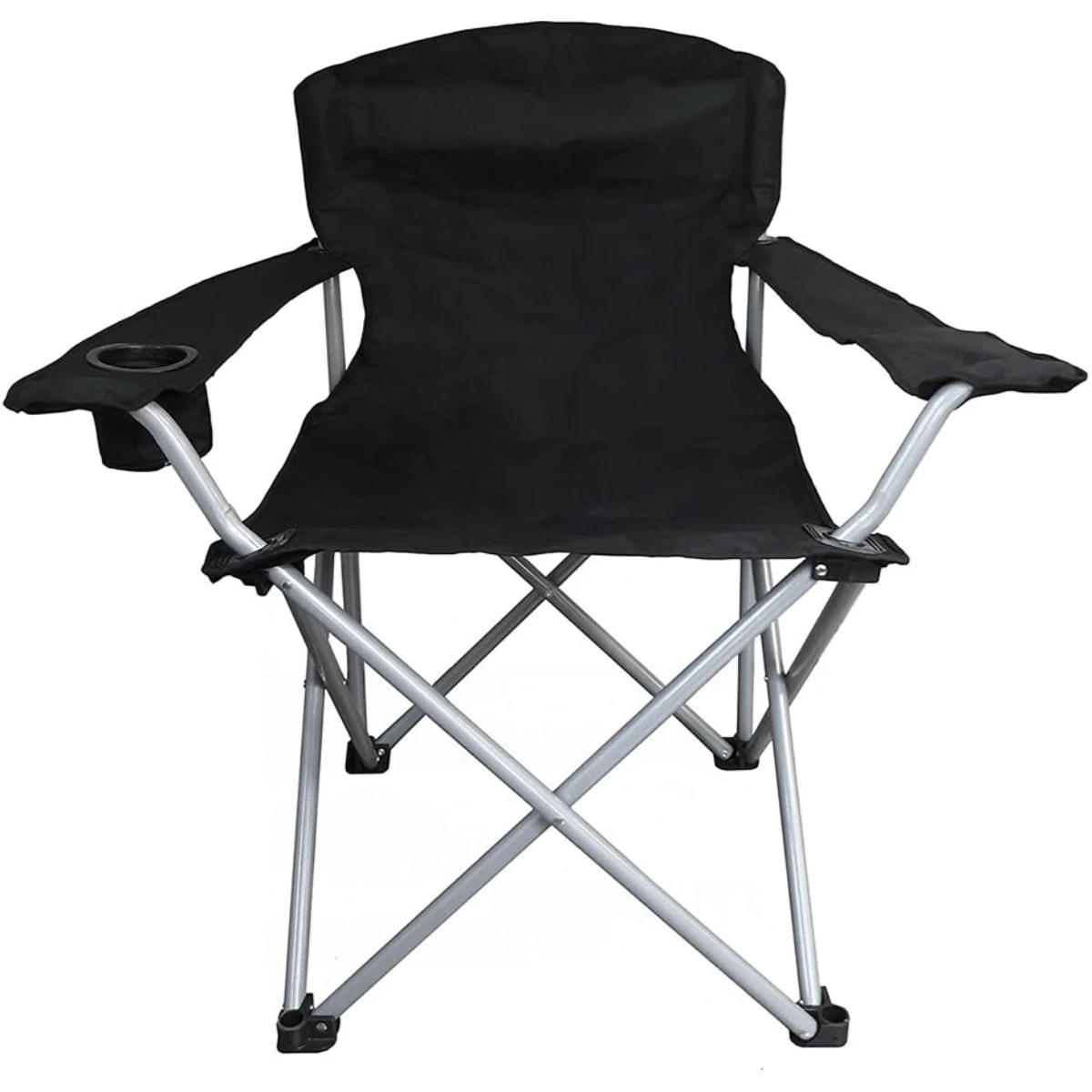 Perfect for tailgating, sporting events, campsites and picnics, this WFS chair is reinforced with a powder coated steel frame for lasting strength and durability. Armrests measure 17-Inch apart at narrowest point and taper out. The Tall 19-Inch back offers support appropriate for a wide range of users. The mesh cup holder is designed to fit most bottles and cans. When you are ready to pack up, the chair easily folds up into a carry bag for simple and compact transport and storage.